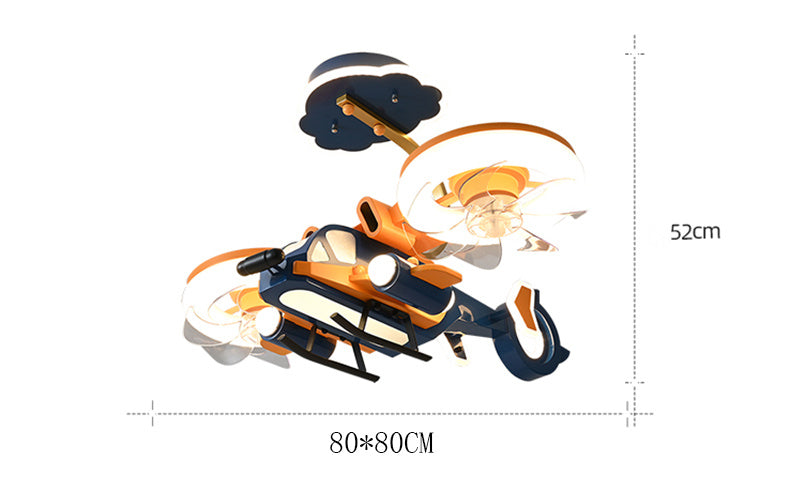 Crafted from durable metal and high-quality acrylic, it features a fixed-blade fan design in a fun yellow and blue fighter-jet theme that brightens up any space. The included remote control allows you to easily adjust light settings and fan modes, ensuring the ideal comfort level day or night.