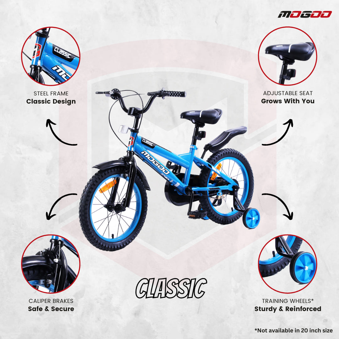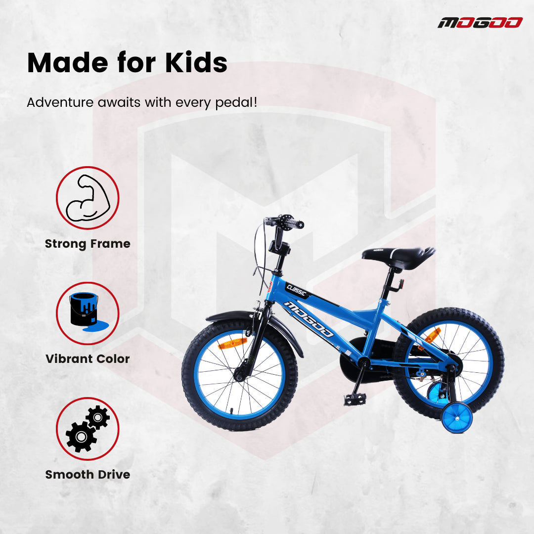 Mogoo Kids Bicycles have sturdy frames and high quality parts to ensure your child's safety at all times. Bicycles and childhood go hand-in-hand. From your kid's earliest tricycle to training wheels to finally cruising around on two wheels, riding a bike is a rite of passage for all children. This bicycle is built to provide your child with the safest and best experience as they get on their first bike.