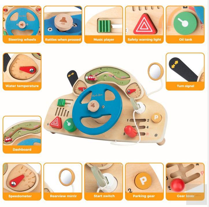 Crafted with Montessori principles, this busy board features steering, gear shifting, switches, lights, and sound effects, giving little drivers a realistic sensory play experience. Ideal for children ages 1-5, it’s a must-have for parents looking to boost early childhood development through hands-on, screen-free activities.