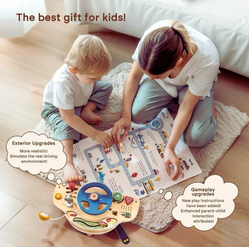 Shop our Montessori Car Simulation Busy Board – a hands-on sensory toy designed to develop fine motor skills, imagination, and STEM learning in toddlers aged 1–5.