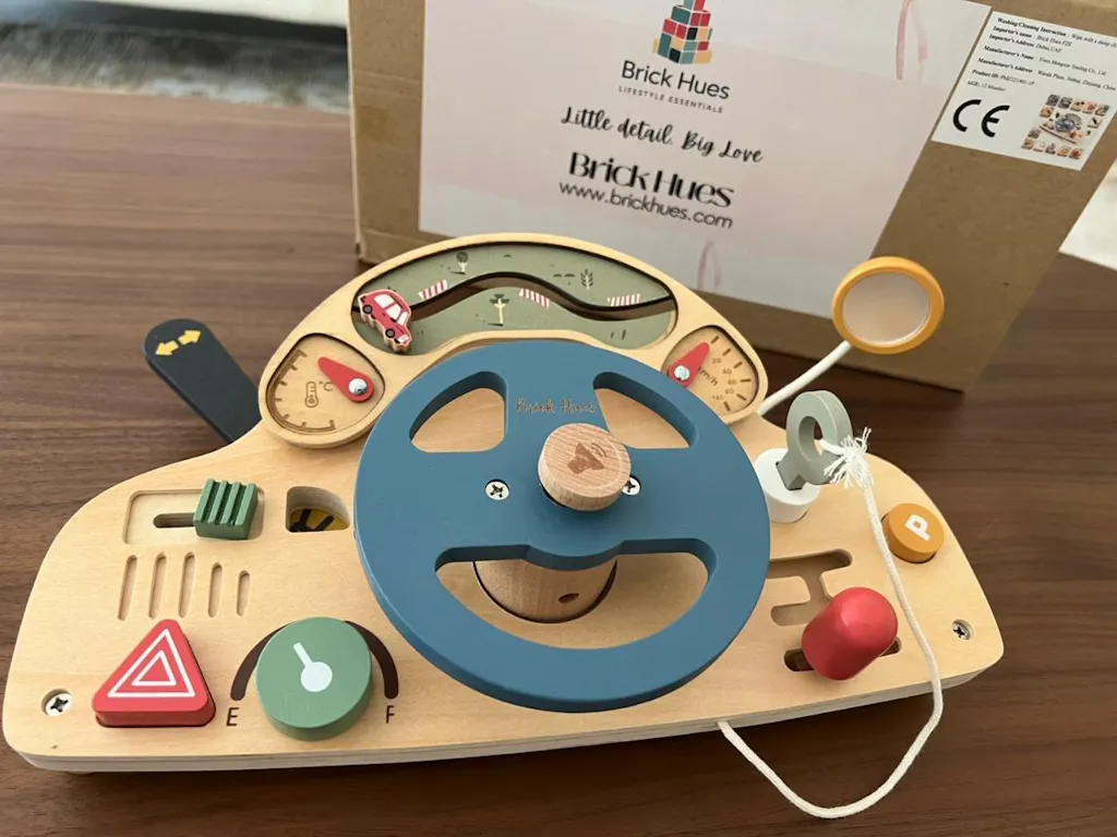 We are absolutely in love with this wooden car dashboard toy from Brick Hues! The design is adorable and full of engaging details—our little one enjoys pretending to drive just like us. From the steering wheel and gear shift to the turn signals and parking brake, every part is thoughtfully made and encourages imaginative play. The wood is smooth and sturdy, and the craftsmanship feels high-quality and safe for kids. It’s a beautiful, screen-free toy that sparks creativity. Highly recommended!