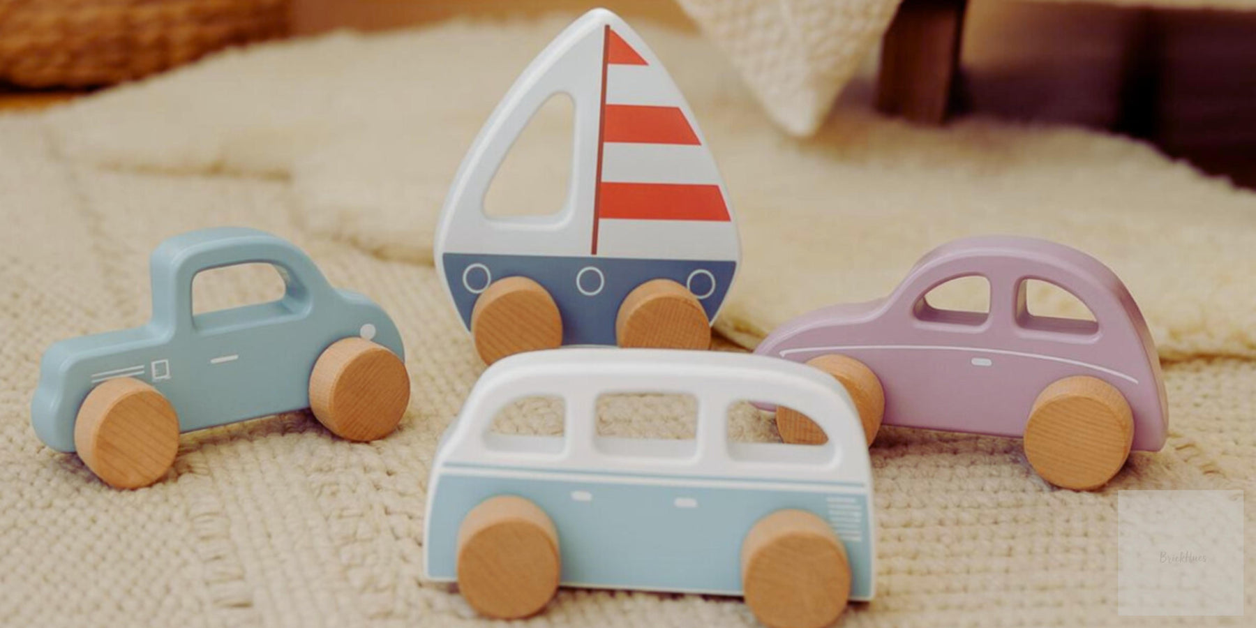 Brick Hues Montessori Wooden Car & Boat Toy Set | 4-Piece Eco-Friendly Baby & Toddler Vehicles – Safe, Non-Toxic, Early Learning Montessori Toys in UAE